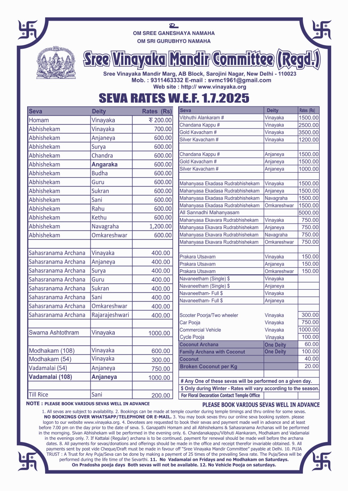 favour of " Sree Vinayaka Mandir Committee" payable at Delhi.